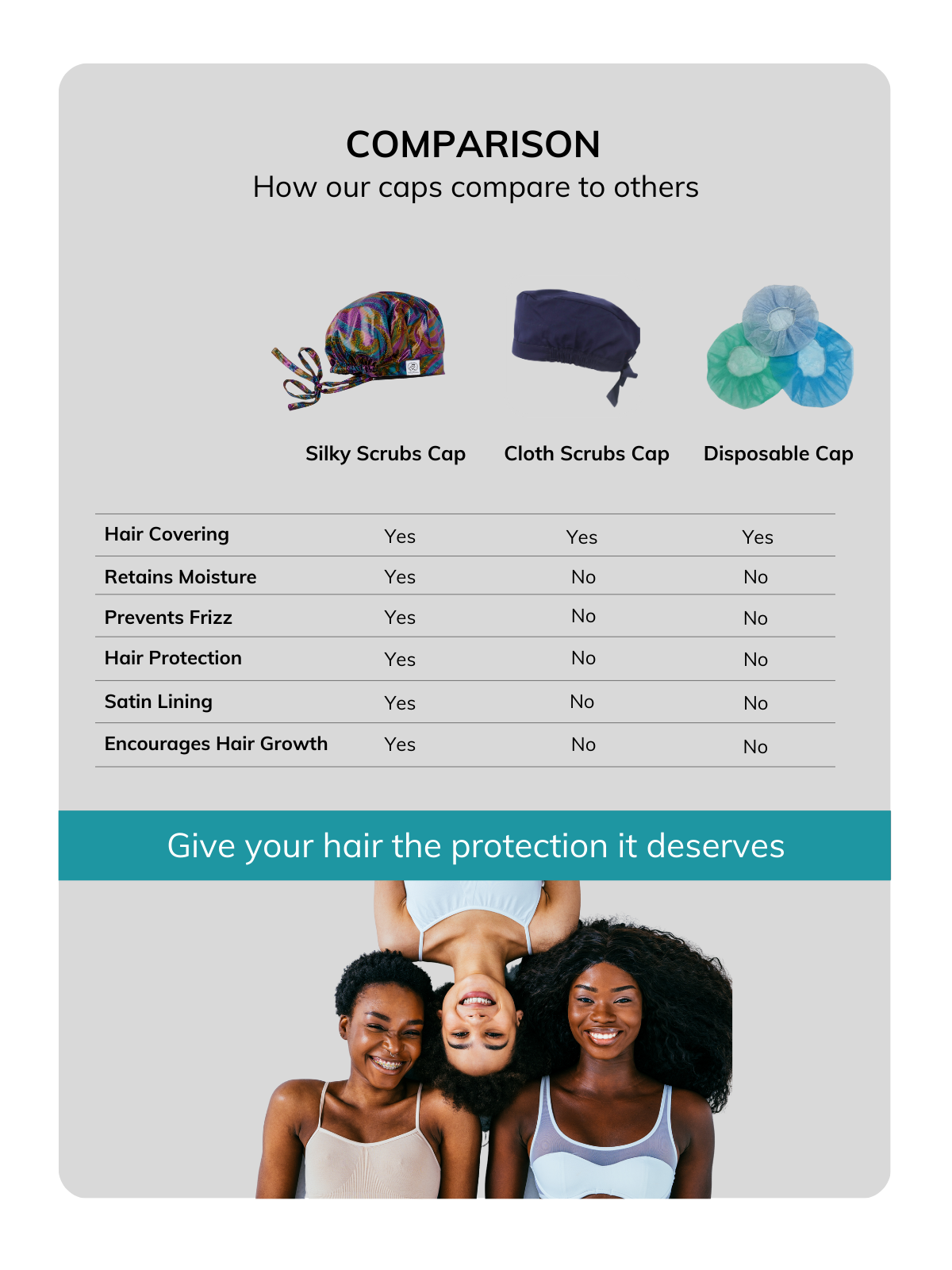 If you’re not head over heels for your Silky Scrubs satin-lined scrub cap, we will gladly issue a refund.